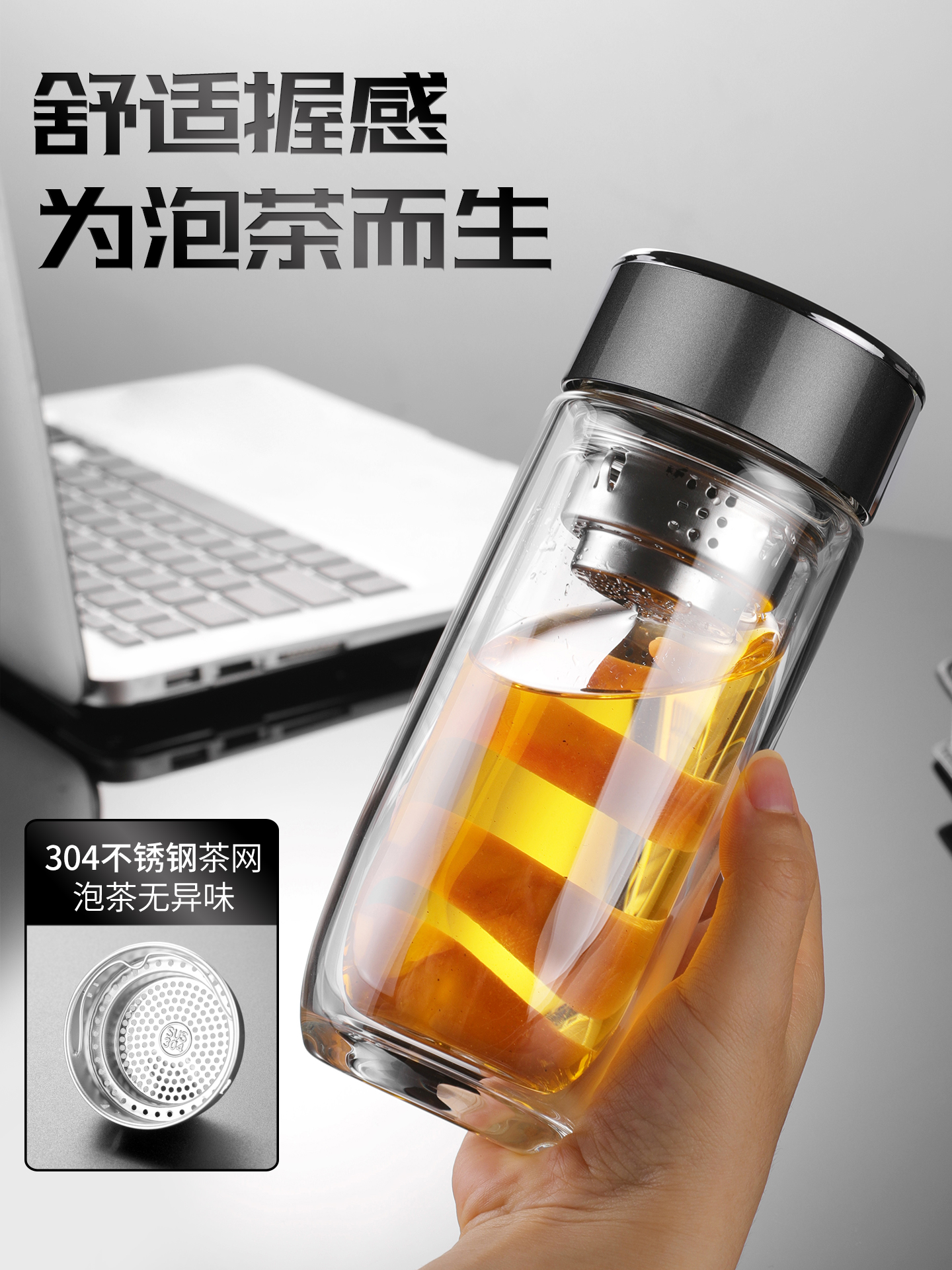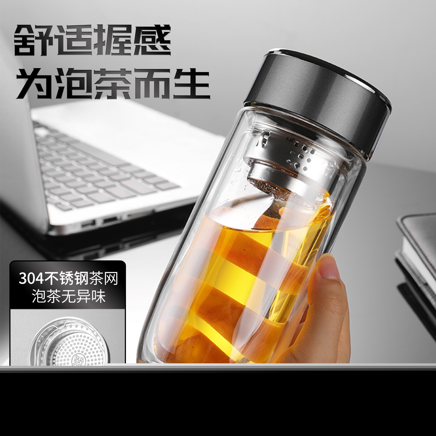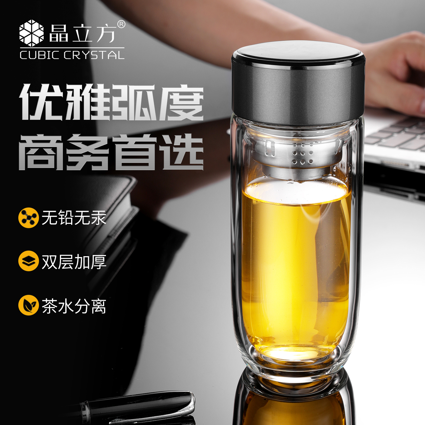 • 雙蓋茶水分離泡茶水杯,雙層茶水分離玻璃杯,商務禮品杯均可訂做 雙蓋茶水分離泡···