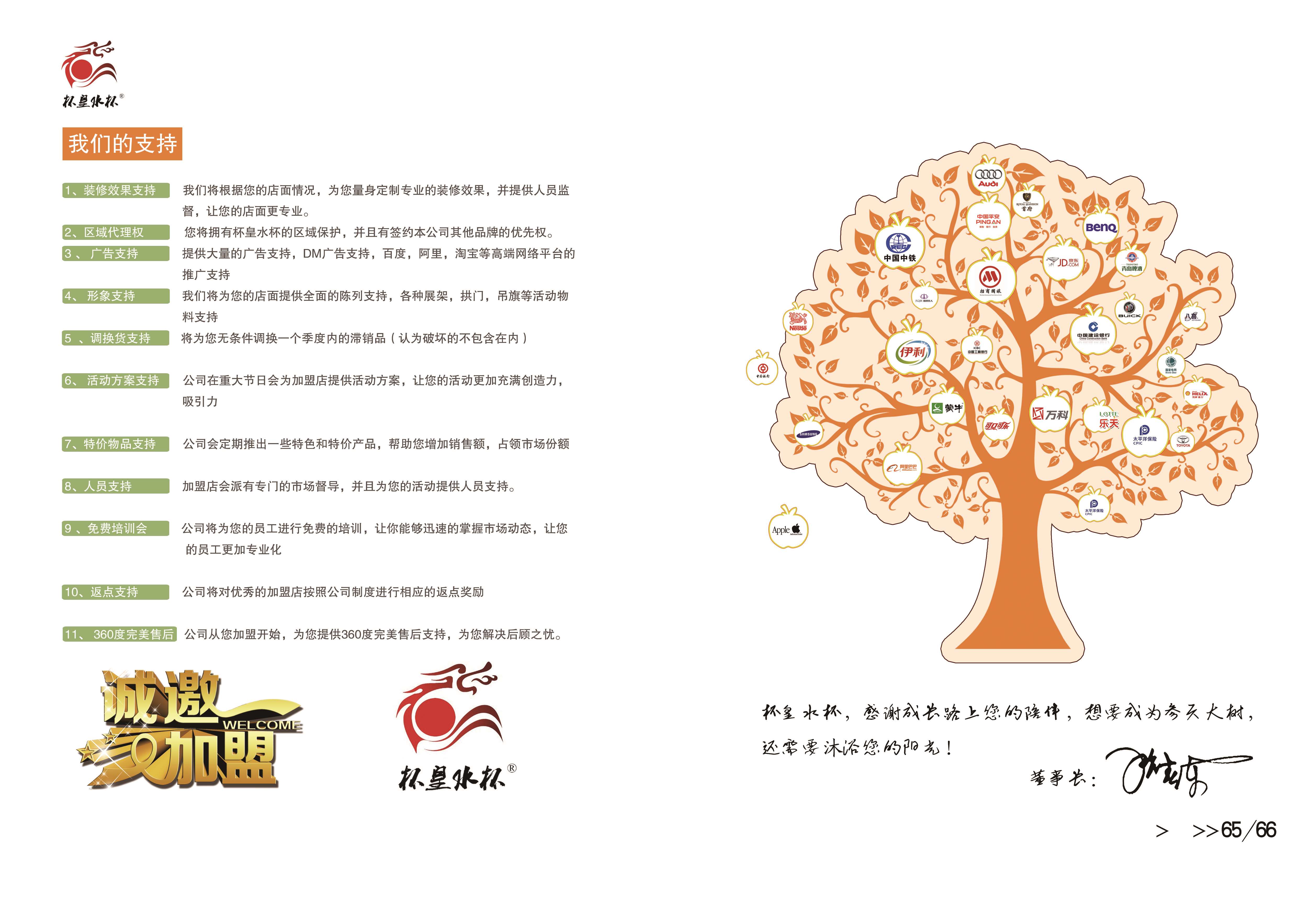 根據(jù)區(qū)域特點,晶立方杯業(yè)將整合電視、報紙、互聯(lián)網(wǎng)等諸多媒體,宣傳“晶立方”品牌的服務(wù)和產(chǎn)品,為加盟投資商提供強(qiáng)大的廣告宣傳支持。